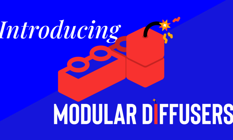 Модульдік диффузерлер – диффузия құбырларын бірнеше тәуелсіз блоктар түрінде құрастыратын құрылым. Әр блок өз кірістері мен шығуларымен ерекшеленеді, соның арқасында оларды бөлек орындауға, алмастыруға немесе алып тастауға болады. Құбыр толықтай жұмысқа дайын болғанда, блоктар «init_pipeline()» әдісі арқылы біріктіріледі, ал модельдің салмақтары «load_components()» арқылы жүктеледі.